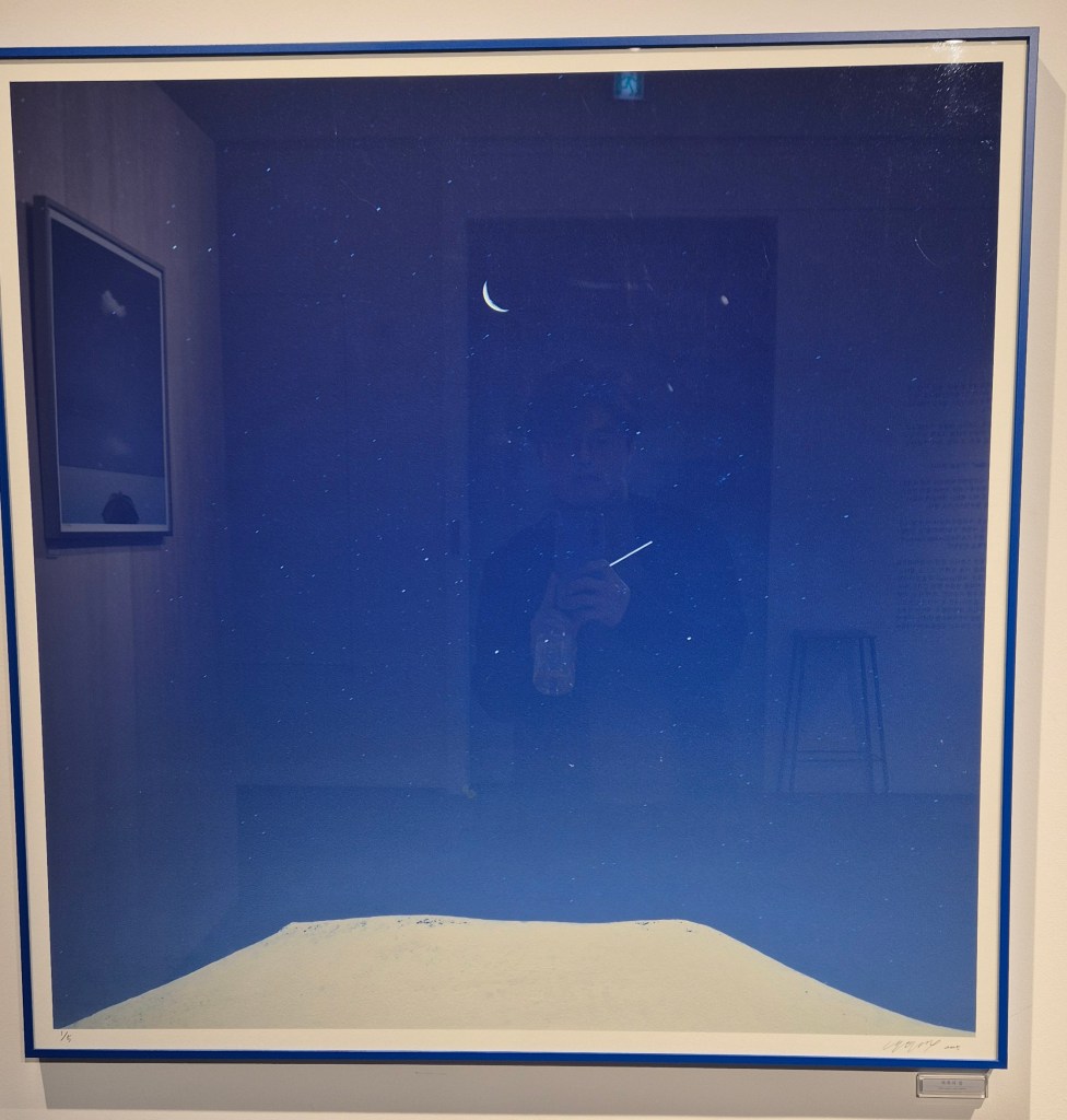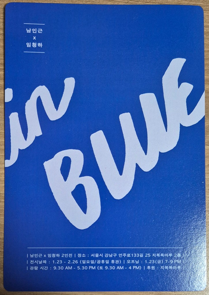 She introduced me to her free two-person exhibition, In Blue, which ran from January 23 to February 26. I went there last Saturday, and I thought the work was quite good. Not only the drawings but also the photos, which were created by another artist, Ingeun Nam, the photographer.