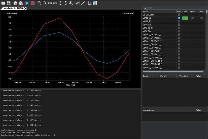 If impedance isn’t handled properly, the signal simply won’t flow the way you expect—and that will happen. Also, if you want to view signals in an oscillator-style analyzer, you’ll need to switch from AC analysis to Transient analysis.