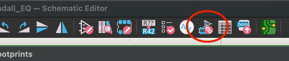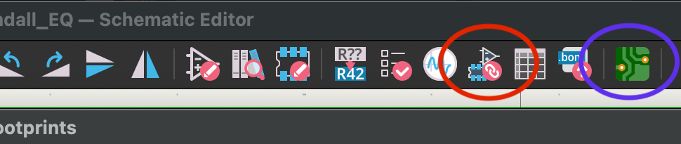 If you look at the top-right area of the schematic, you’ll see link indicators for the op-amps and IC chips. Clicking one of those opens a window where you have to manually assign the correct physical package for each component. This is called a footprint.