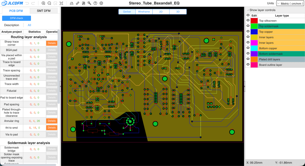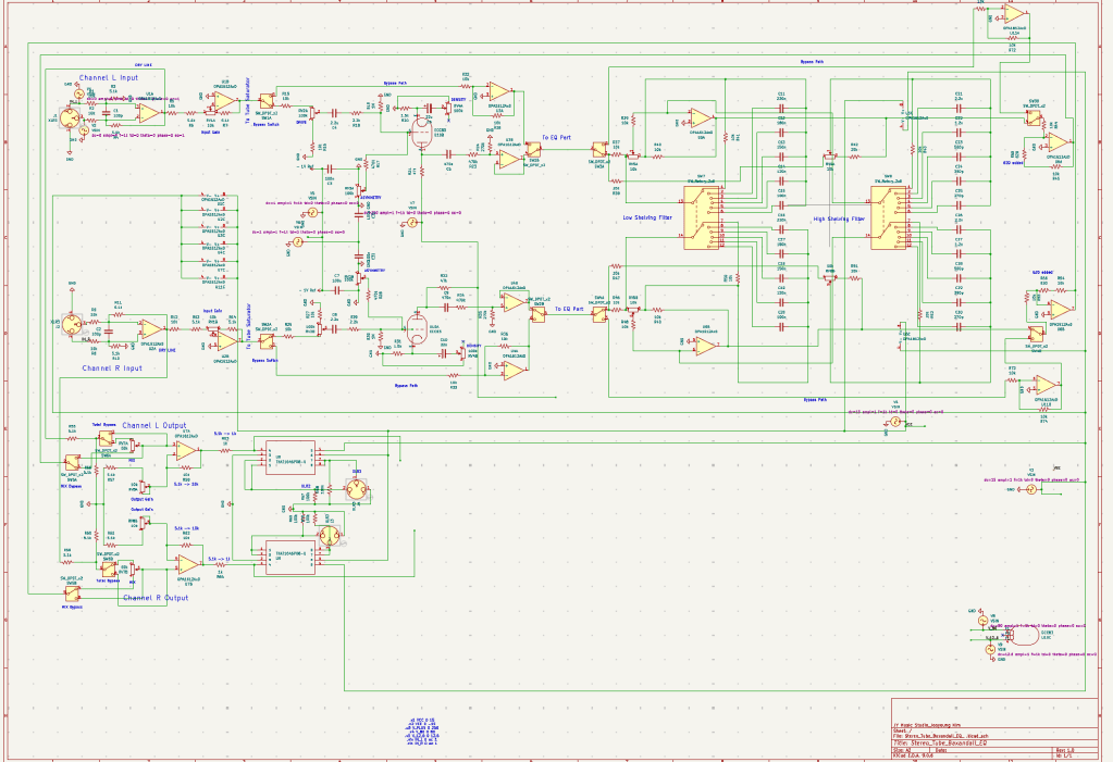 To assign the correct footprint, you need to carefully cross-check each part against its datasheet and match the exact specifications. Honestly, that process nearly drove me crazy. After soldering everything together, I discovered about three problematic spots. I managed to fix them with some creative rework, but since I also had to revise the EQ bypass section anyway, I ended up redesigning the PCB and placing a new order. The thought of desoldering everything and starting over again is… thrilling, to say the least.