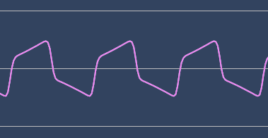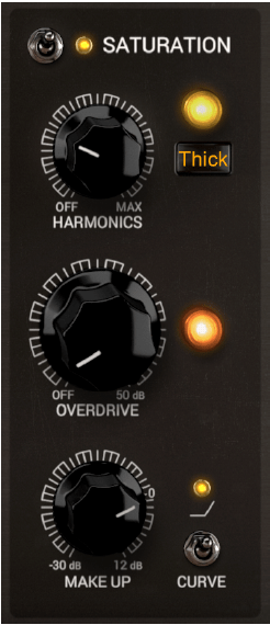 In particular, the saturation is quite strong in Thick. Even the slightest touch to Overdrive will result in significant saturation. The larger the value of both parameters, the more the waveform is affected.