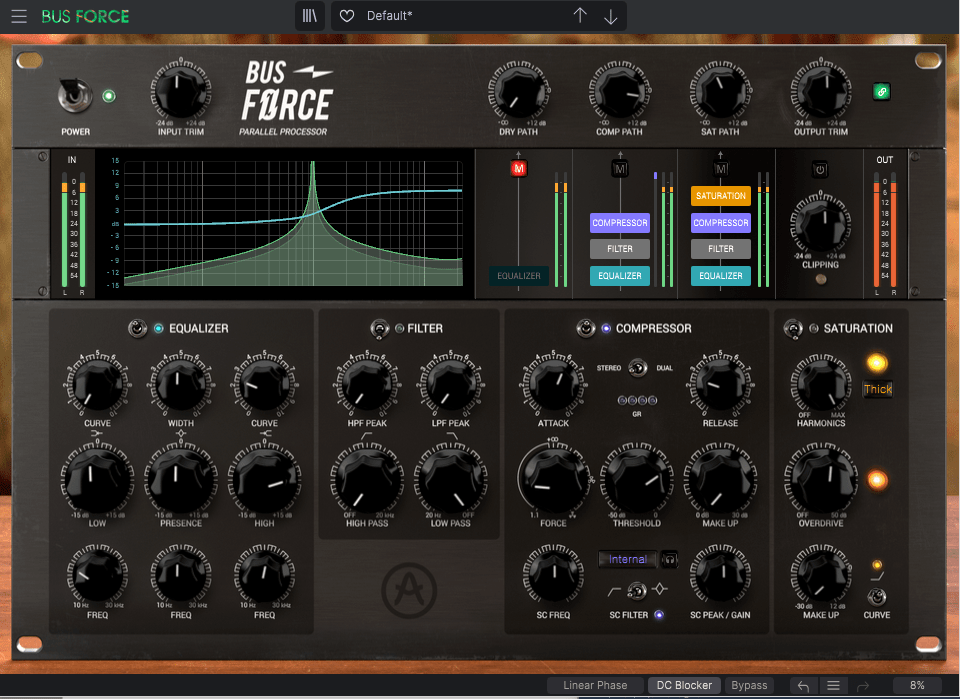 Bus Force is a plug-in designed to be attached to a bus stage like a typical Channel Strip plug-in.