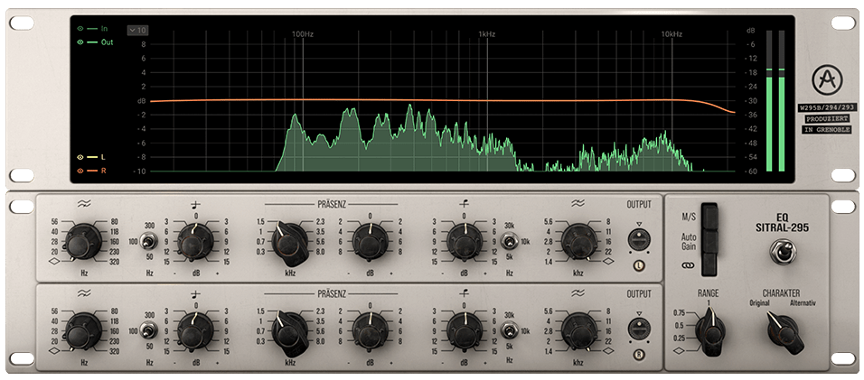 The Sitral-295 plug-in is a clone plug-in of the Siemens Sitral W295 EQ.