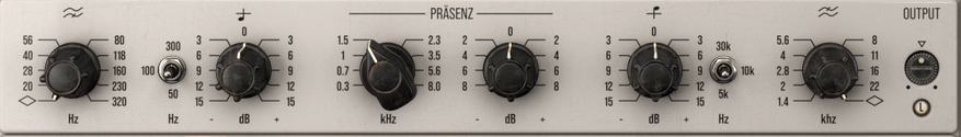 Excluding the three switches, Range, Charakter (German), and Auto Gain, you can think of it as simply moving from the left to the right of the plug-in. Each function will be explained in the description of the module below.