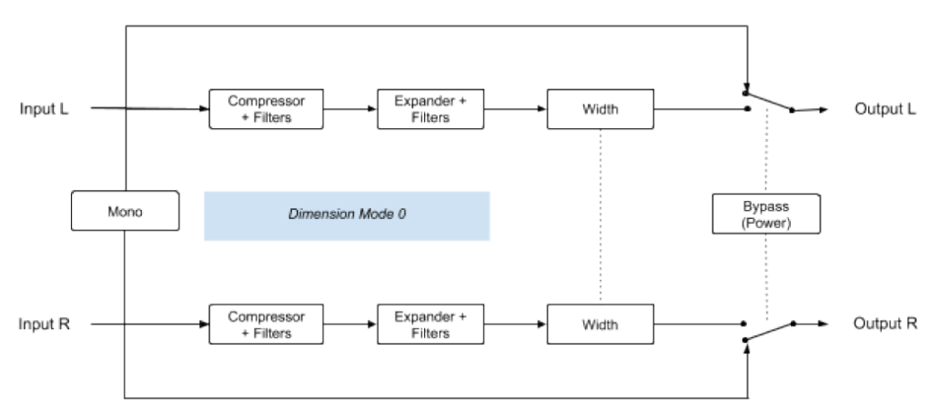 There are a total of 5 Dimension Mode buttons. In the original hardware, the 0 button was just a Bypass button, but like the Signal Path below, Arturia made it possible to apply some color through Comp, Expander, and Filter together.