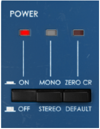 First of all, there are three switches in the power section. The leftmost switch is the On/Off switch, and the middle switch determines whether to receive the signal in Mono-Sum or Stereo.