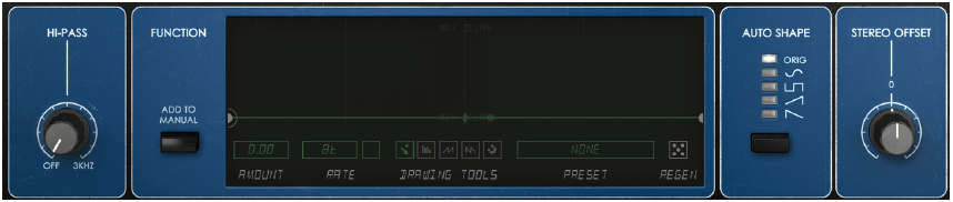In Advanced Control, there is a 12dB/Oct Hi Pass Filter function, a function to create the shape of a function generator that can be added to Manual mode (said to be the same as the generator included in Arturia’s Pigments or OB-Xa V), and an Auto LFO of 5. There are two functions to choose from, the Stereo Offset function, which is similar to Stereo Width, but works differently.