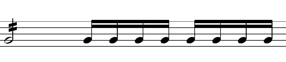 Tremolo is written as above, and the beat is determined by the number of sticks drawn on the note. You can think of one as 8 minutes, two as 16 minutes, and three as 32 minutes.