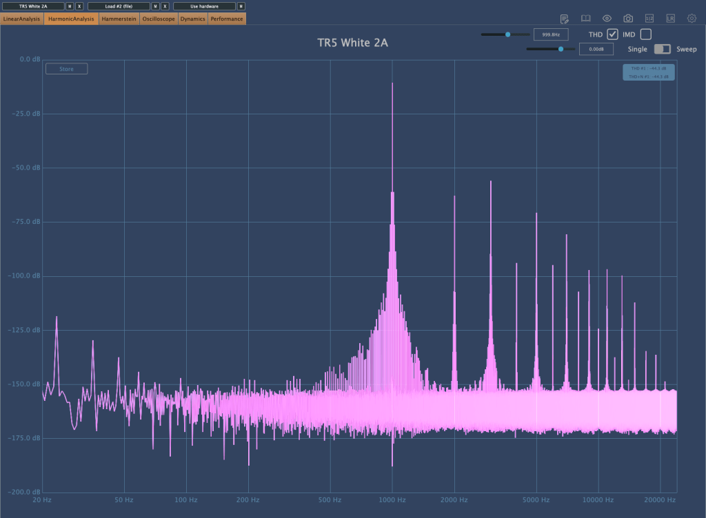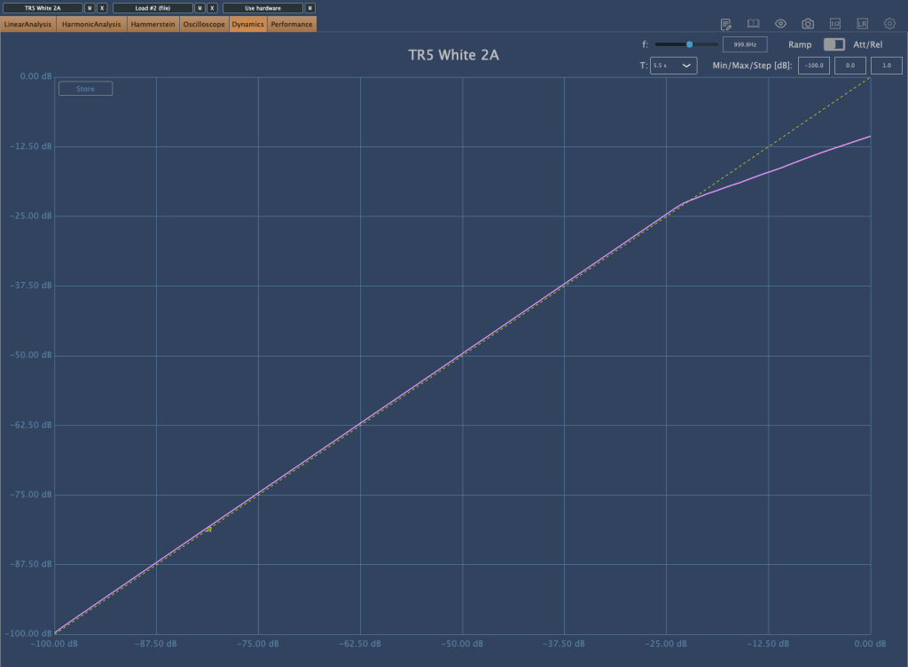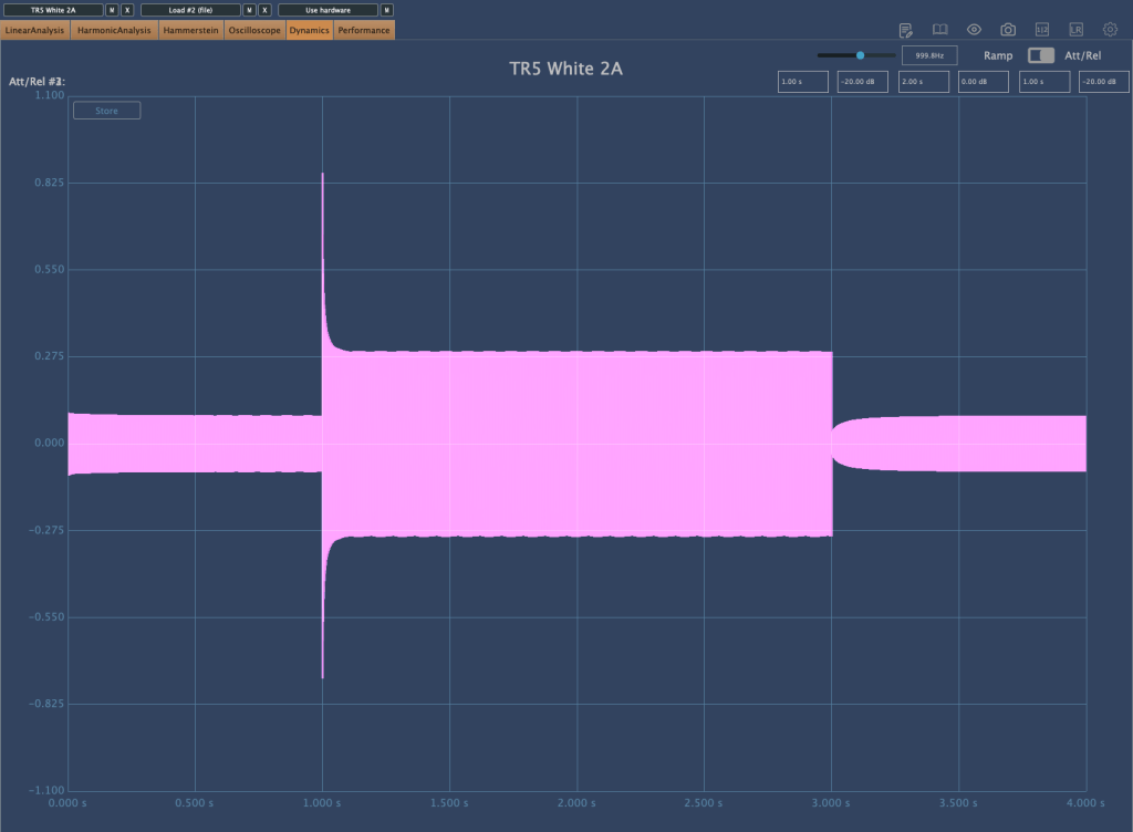 The White 2A, emulating the LA-2A, shows in its Release time that it faithfully reproduces the characteristics of an Opto compressor. It also slightly cuts the extreme low-end. Note that when first applied, the Limit/Compress switch is set to Limit, so switch it to Compress if you want to use it as a compressor.