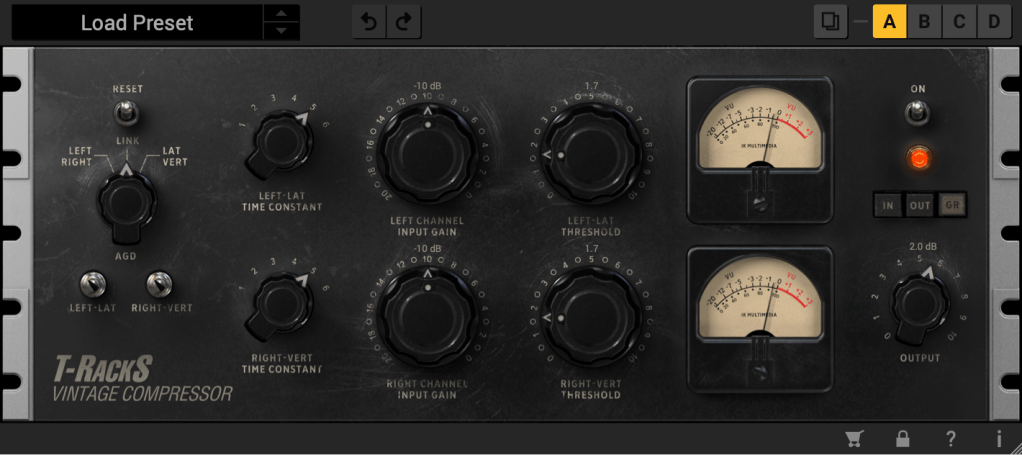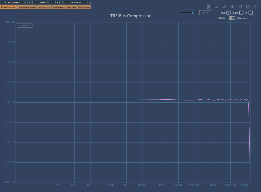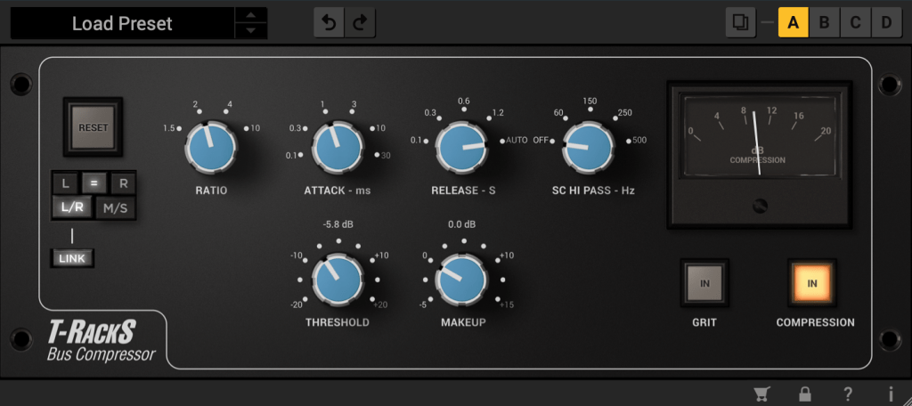 The Bus Compressor, emulating the SSL Bus Comp, operates with a Soft Knee when selecting ratios of 1.5 and 2, compressing very smoothly. It also gently tidies up the high frequencies, which I really like.