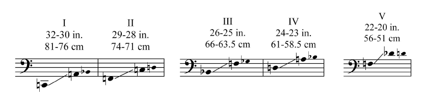 The bass drum, ranging from 24 to 36 inches, is played while standing and typically dampened by hand. It is notated on a single line in the score.