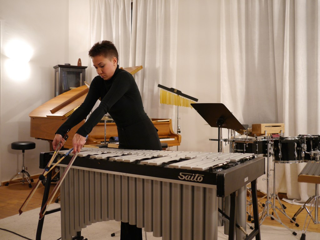 The xylophone has wooden bars arranged like a piano keyboard and is sensitive to strong impacts, so its attack is not very forceful. It’s usually played with four mallets (two in each hand), and the resonators beneath the bars amplify the sound.