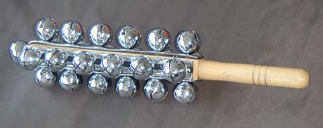 The bell tree, also known as tree bells or Chinese bell tree, consists of 14 to 28 bells arranged vertically. Unlike the Mark Tree, it is played by sweeping a beater, usually a triangle beater or a glockenspiel/xylophone mallet, from top to bottom for a glissando, or striking individual bells for single notes.