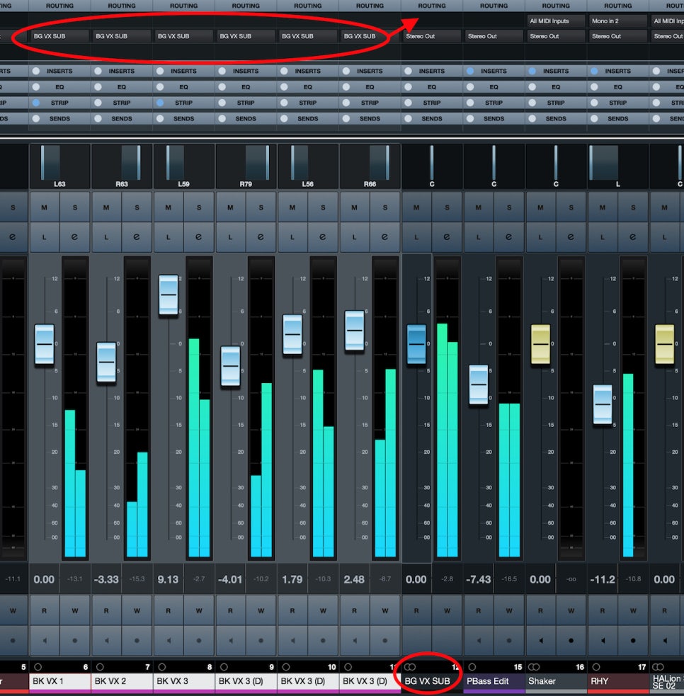 Next, we need to look at the group/send section and bus.