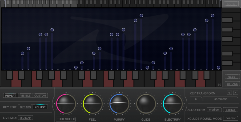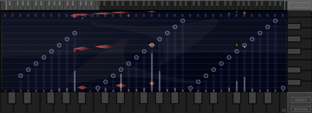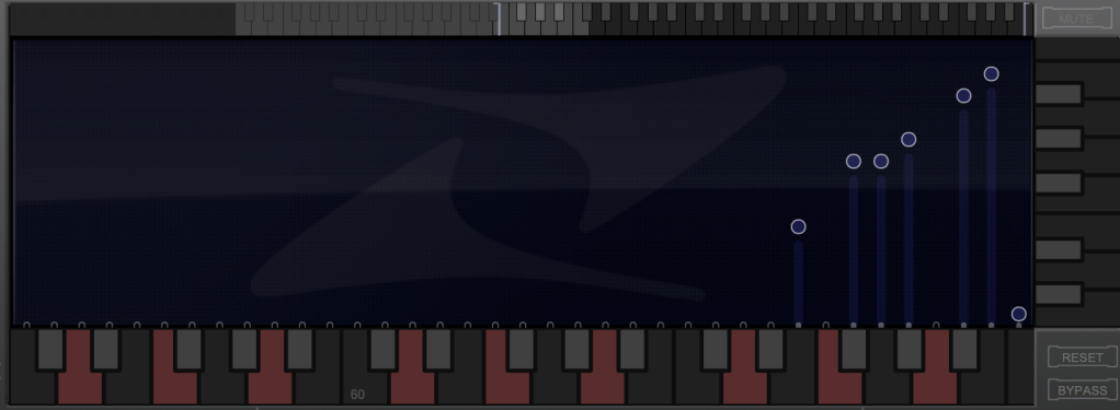 The white bars in the top piano roll can be moved to set a specific pitch range. The image above sets the range from Eb downwards to be excluded.