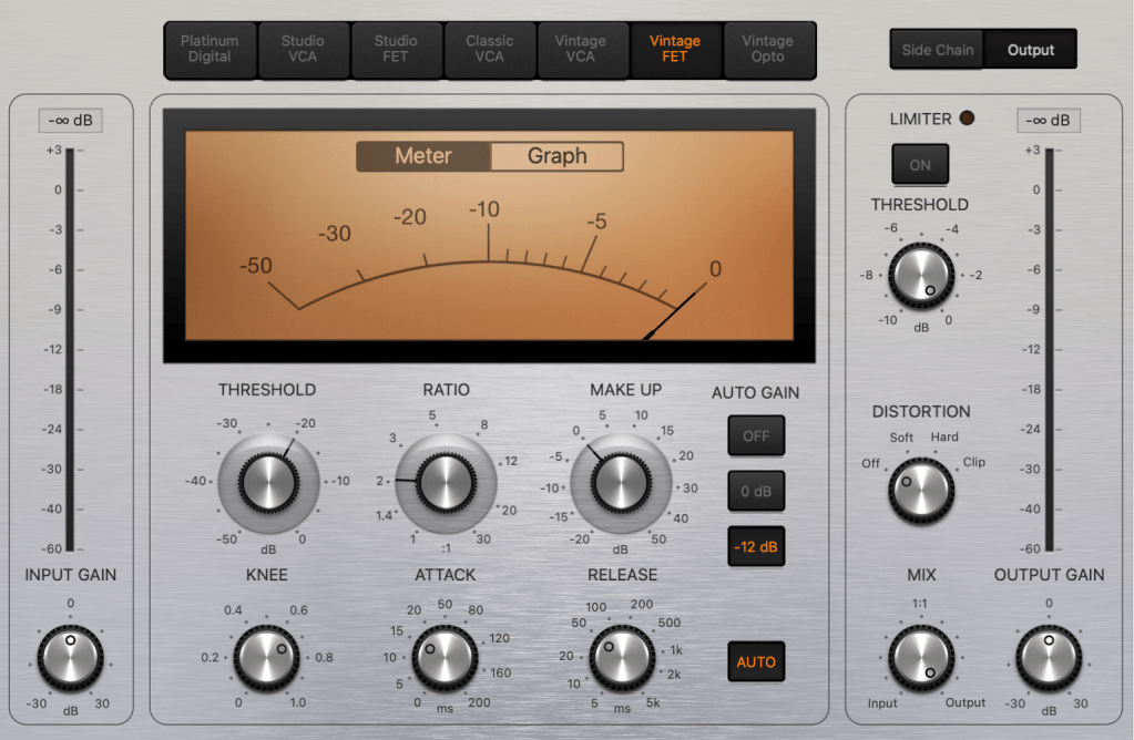Many compressor plugins have an Auto Gain feature that automatically adjusts the volume, but in my experience, none of them have worked well enough. So, if your compressor has an Auto Gain feature, it’s best to turn it off.