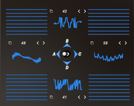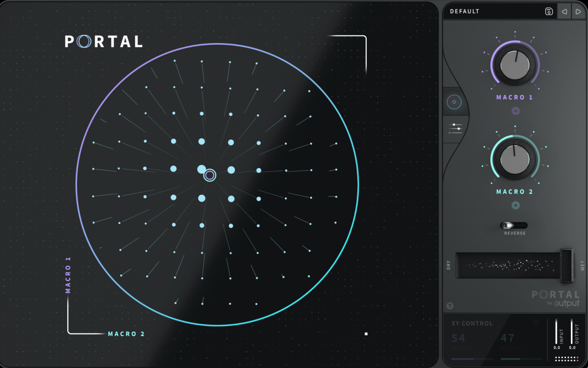 In Output’s Portal, Macro 1 is placed on the vertical axis, while Macro 2 is on the horizontal axis. The values of these macros control various parameters.