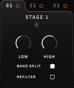 On the left, you can select the area to adjust through Stages, enabling you to control three different frequency ranges separately.