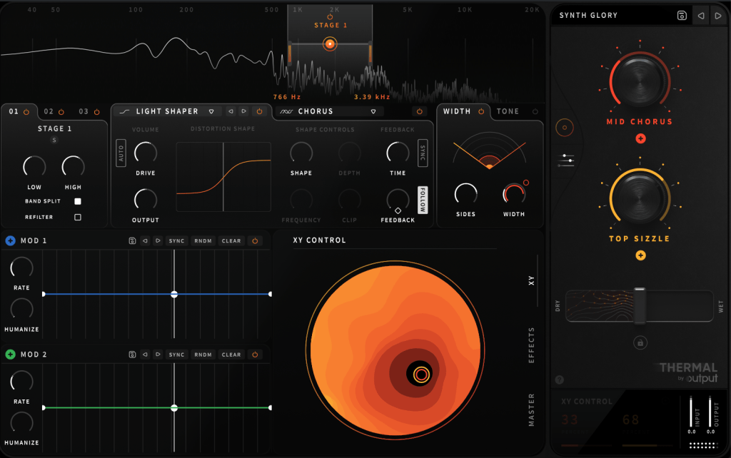 Thermal is one of Output’s flagship effect plugins, specializing in various types of distortion. Its basic UI is similar to that of Portal.