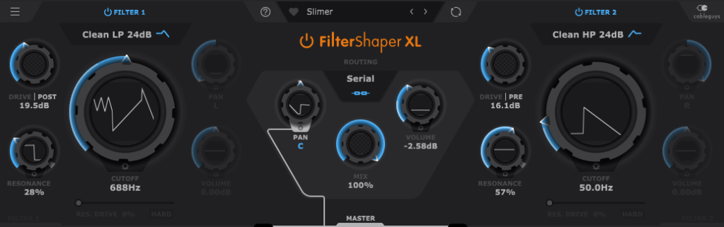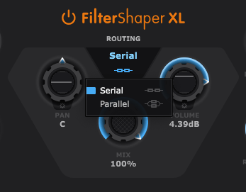 Looking at the UI, you’ll notice it’s split into left and right sections. Both sides represent filters, and the central Routing button allows you to choose between serial or parallel connections.