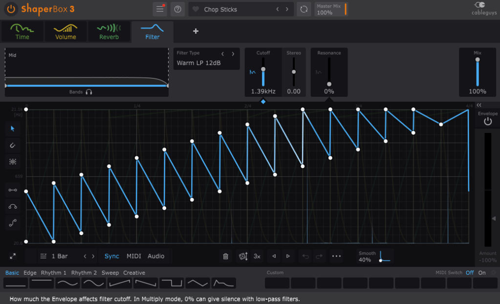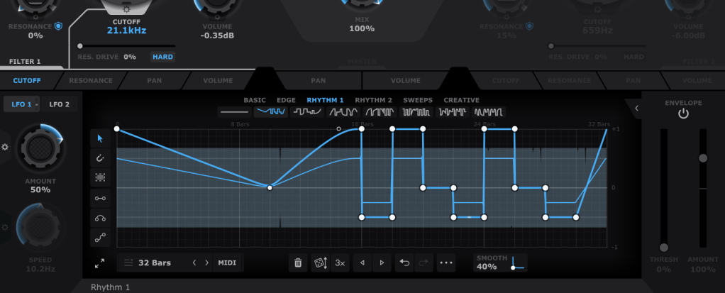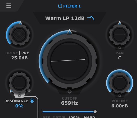 If you’ve used filters before, this should feel intuitive. Even if you’re less experienced, you’ll probably grasp the basics of Cutoff (which determines the frequency at which the sound is attenuated), Pan, and Volume.