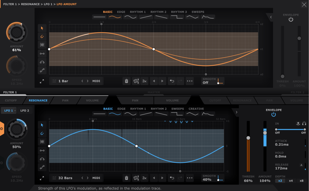 Lastly, the Envelope Follower in the bottom right lets you change the intensity of the LFO based on the input signal. You can also set the LFO’s LFO in the same section, giving you more control.