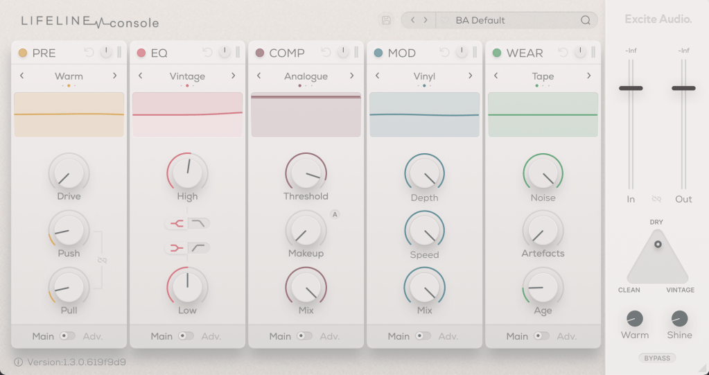 Even if you bypass all the modules, the Clean, Vintage, Warm, and Shine settings still affect frequency response and harmonic distortion. It’s fair to think of it as a type of saturator.