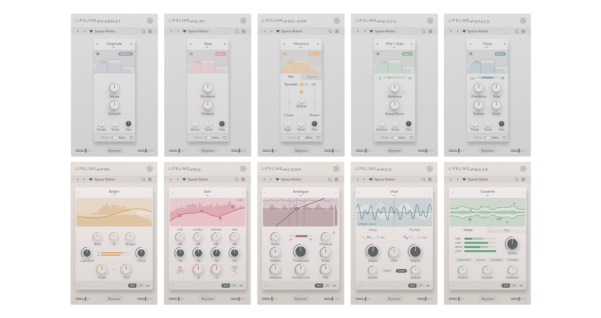 There are 10 Lifeline Modules in total, and the Lifeline Console includes 5: Preamp, EQ, Compressor, Modulation, and Wear.