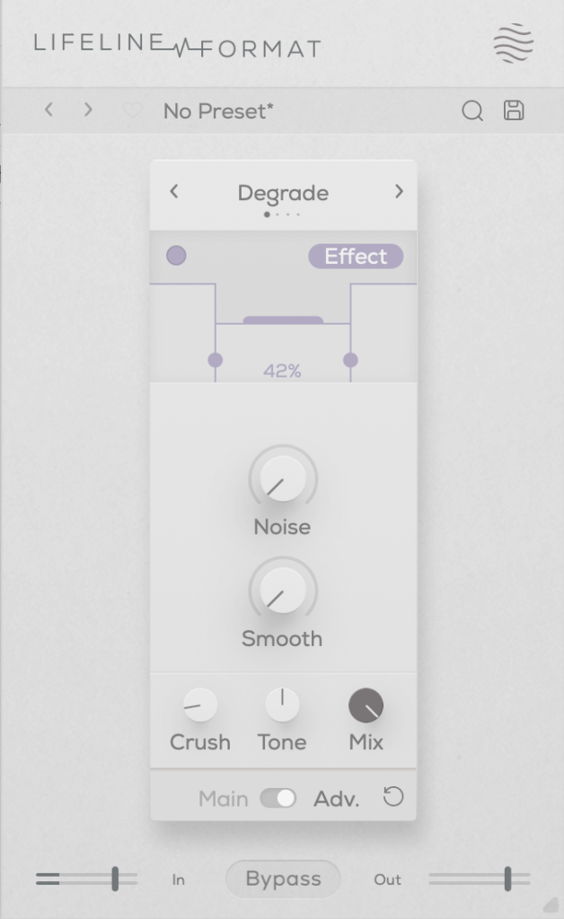 • Degrade: Reduces the bit depth of the incoming audio, creating digital distortion.