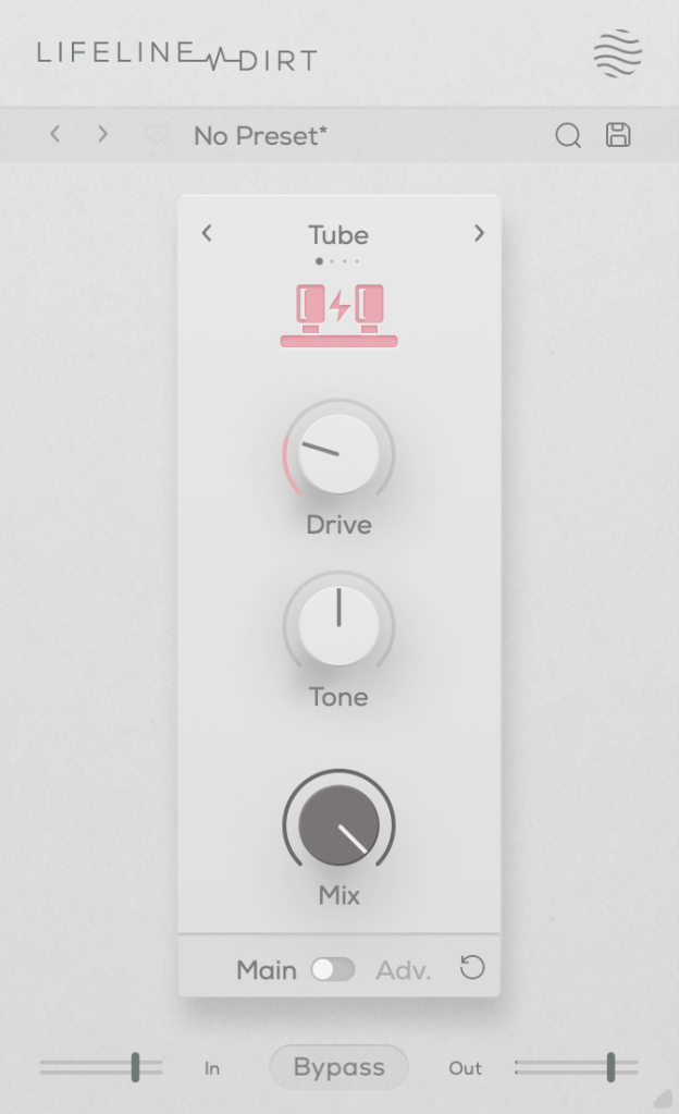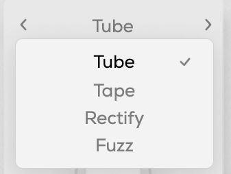 You can choose from four types: Tube, Tape, Rectify, and Fuzz. The controls are the same as in Format, so I won’t repeat the explanation.
