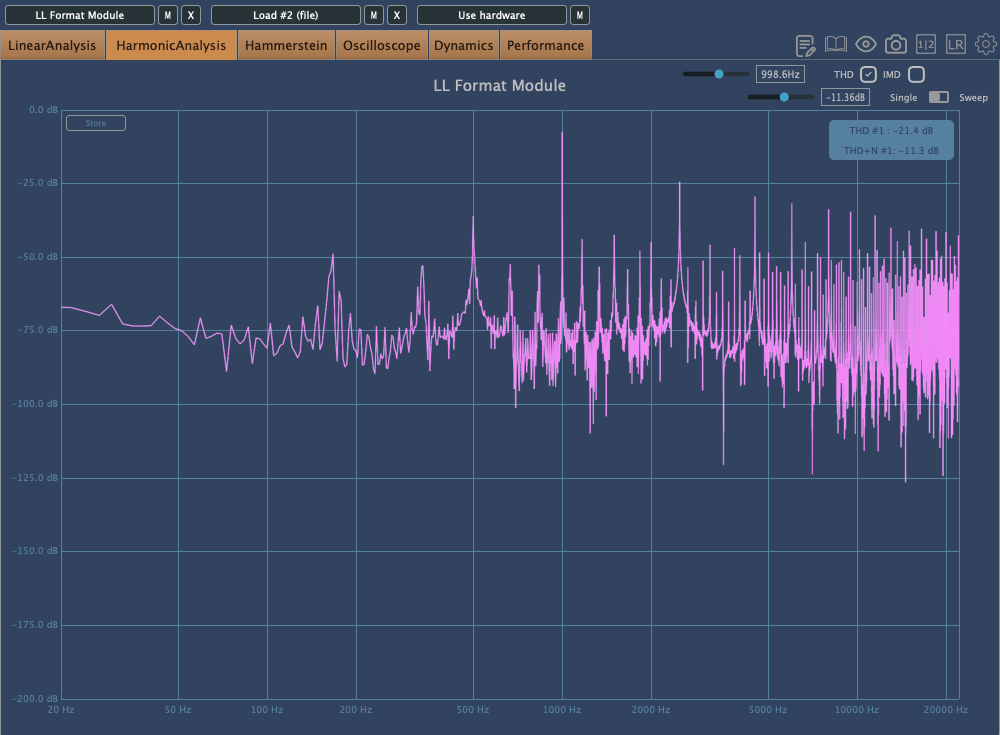Flatten shows harmonic reflections, indicating a resampling effect, combined with reduced bit depth, resulting in multiple distortions.