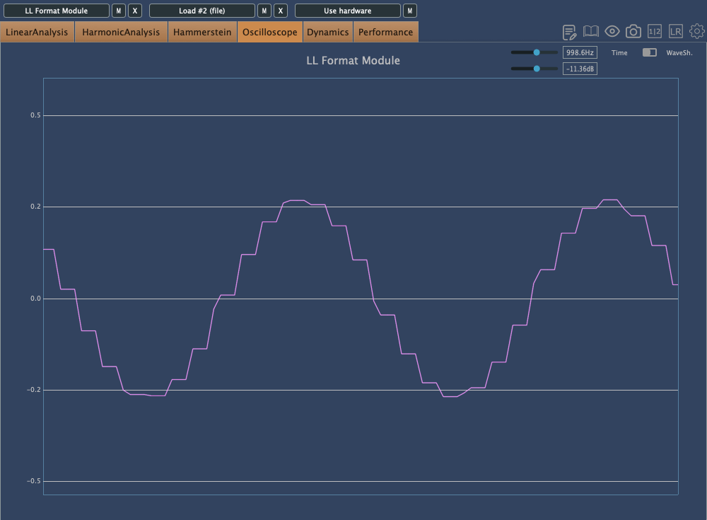 This is Degrade mode, where reducing the bit depth makes the waveform appear choppy in the oscilloscope.