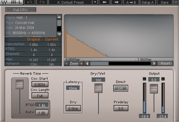 With IR (Impulse Response) reverbs, drastic changes to settings like Pre-Delay can feel unnatural, so if you’re not satisfied with the sound, it’s better to switch to a different reverb entirely.
