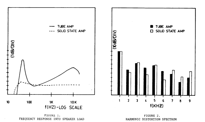 The image above is from a 1981 paper titled Tubes versus Transistors in Electric Guitar Amplifiers. It shows the response of electric guitar amps that use vacuum tubes or transistors.