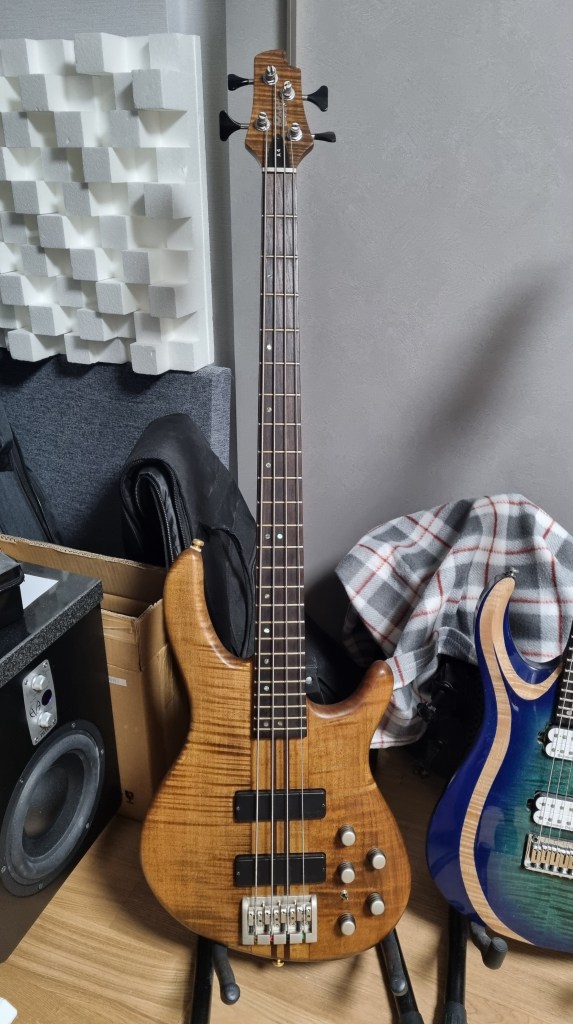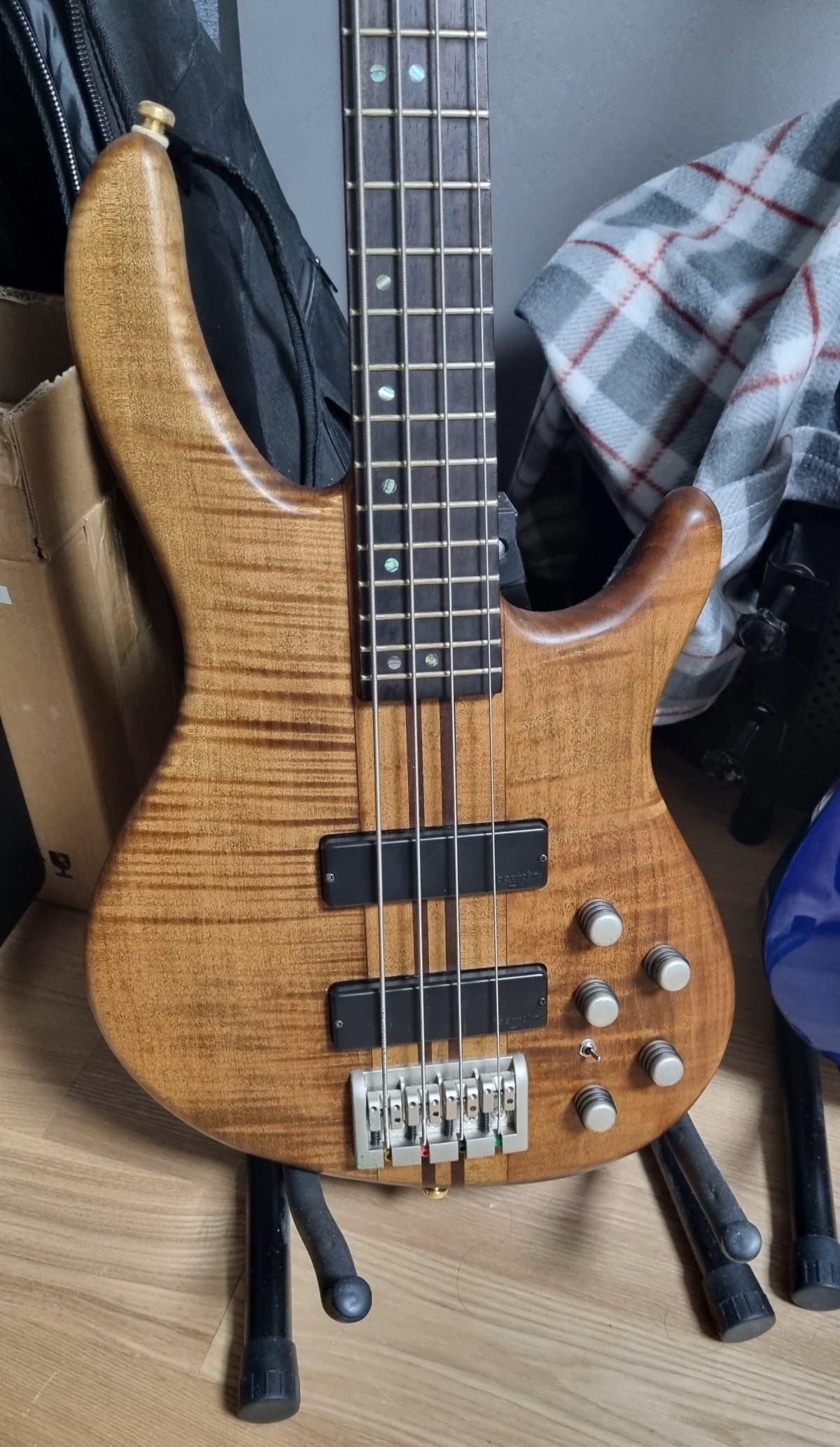 It’s an older model, so unfortunately, it only works in active mode with no option to switch to passive. There’s also some rust on the knobs and bridge, which is a slight drawback. However, after trying it out, I really liked the sound—it’s exactly what I was looking for.