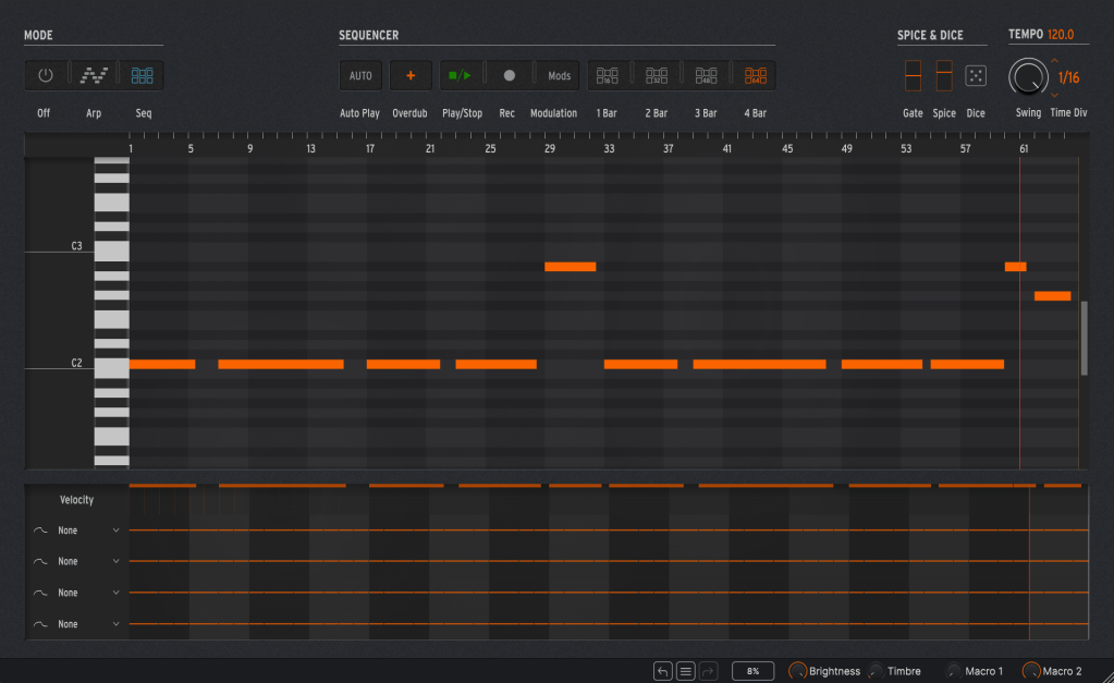 This instrument is perfect for creating bass lines with a pattern-focused approach, staying true to the TB-303’s legacy.