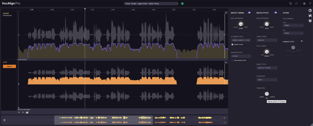 Once configured, you’ll see how the pitch, volume, and timing of the two sources align.
