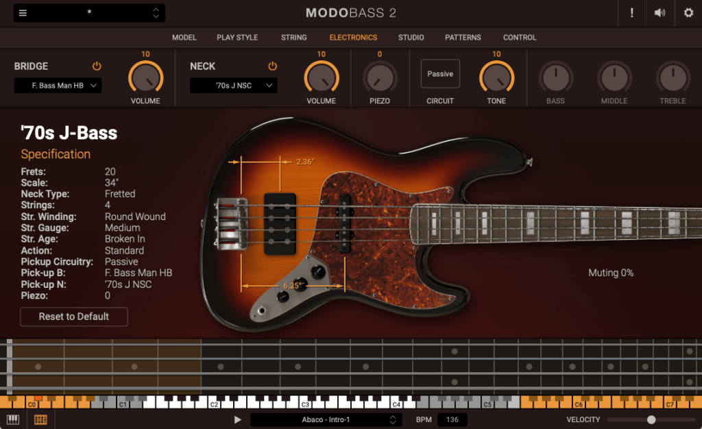 MODO Bass 2 uses physical modeling technology to recreate the physical structures and sound characteristics of various bass guitars. Unlike sample-based instruments, MODO Bass is incredibly lightweight yet still provides rich, realistic tones.