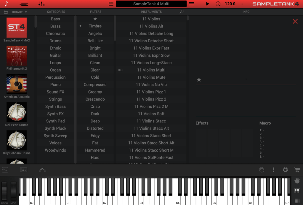SampleTank 4 MAX v2 functions similarly to Native Instruments’ Kontakt, serving as an engine to load virtual instruments. While the orchestral library Miroslav Philharmonik 2 has its own standalone engine, it can also be loaded into SampleTank for convenience.