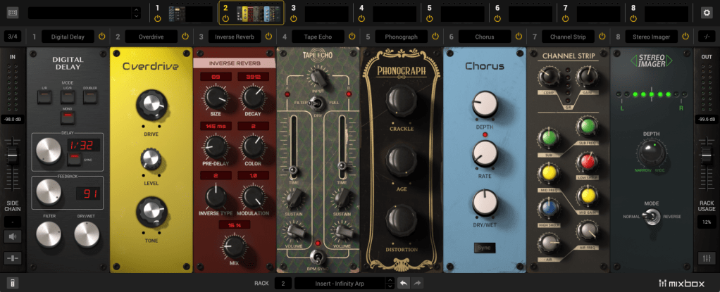 | MixBox | Offers 72 mixing processors and creative effects, enabling custom channel strips and multi-FX chains with over 600 presets. |