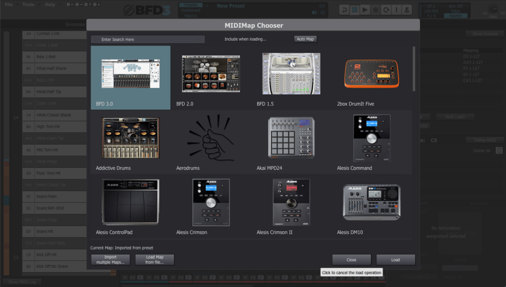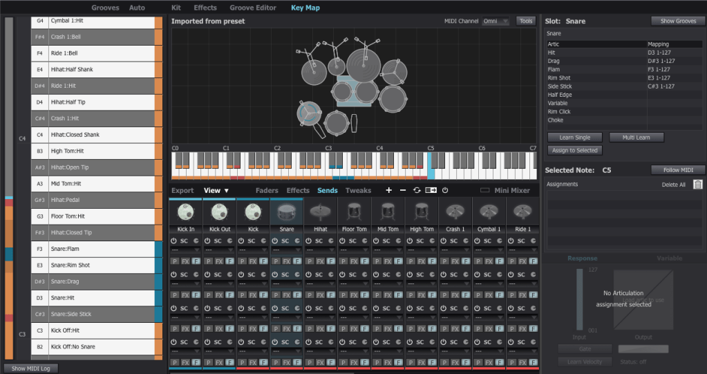 For drum mapping, I use the BFD2 GM-compatible Key Map, which was recommended by my mentor. You can load it via File > Load Key Map.