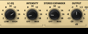 - Besides Input and Output levels, the main controls include Drive, High Frequency, and Low Frequency.