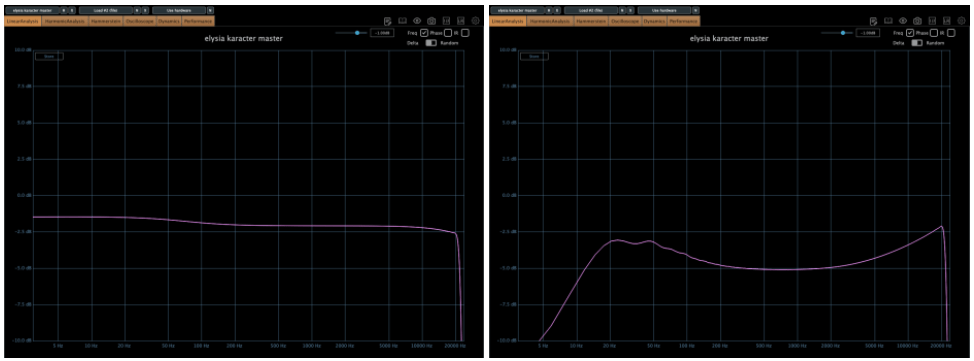 On the left, we have the default settings, while the right shows the FET mode, which emulates the classic “Smile EQ” curve.