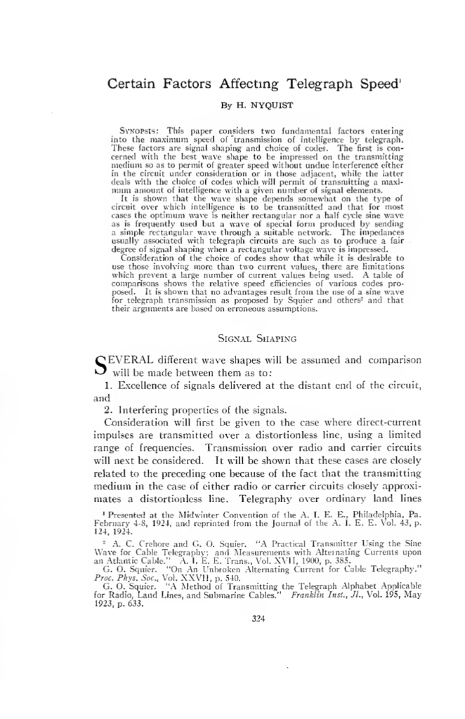 - Certain Factors Affecting Telegragh Speed(1924, Nyquist)