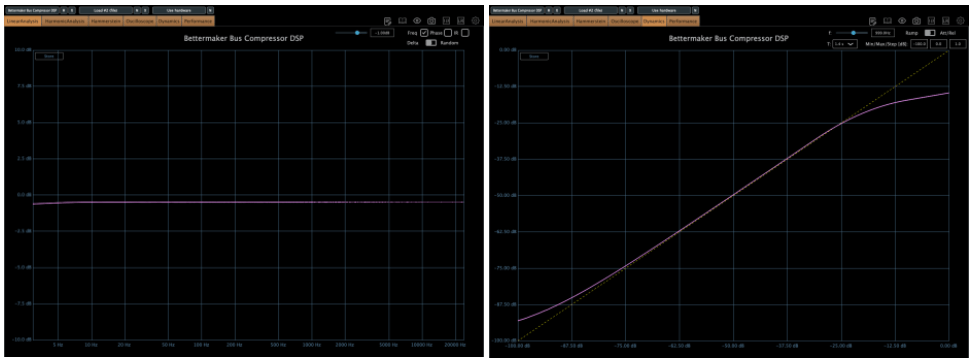 The frequency response is flat except in the ultra-low end, and the compression curve is smooth as butter. After messing around with it, I think it’s an incredibly well-made bus compressor. SSL-style compressors sometimes smear the low end or feel a bit hollow, but this one keeps the lows tight and solid without eating them up.