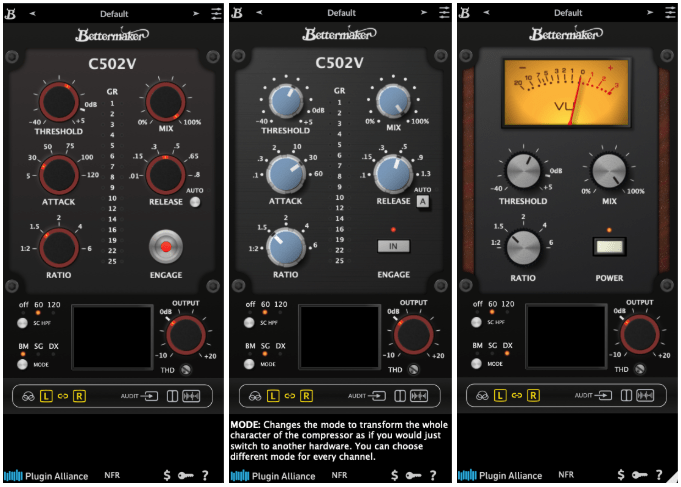 This is another plugin modeled after Bettermaker’s C502V hardware. It offers three modes: