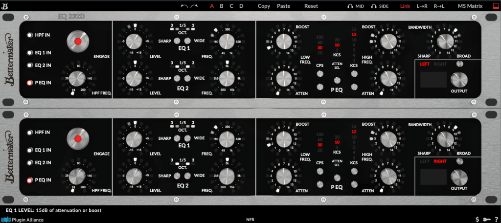 This plugin recreates Bettermaker’s EQ232P MKII hardware—a super clean EQ with no THD, just pure frequency shaping.