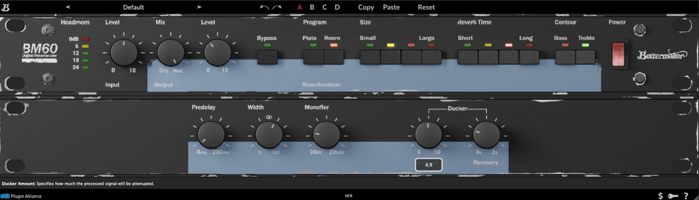 The BM60 is a reverb plugin based on the Lexicon PCM 60. The original hardware had intuitive controls, and this plugin adds extras like Predelay, Width, Monofilter, and a Ducker, making it really versatile.