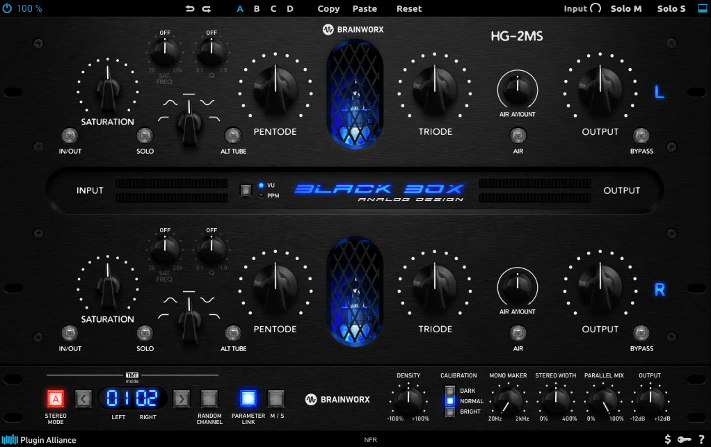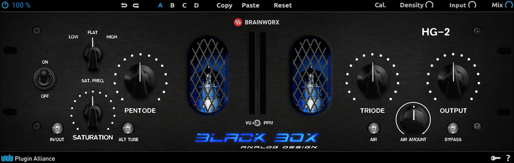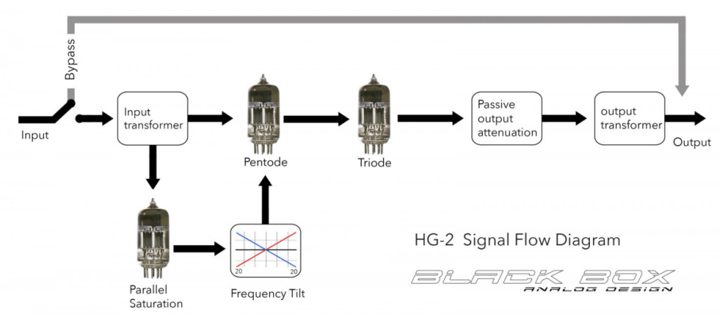First off, these plugins are recreations of the HG-2 hardware from Black Box Analog Design. As you’d expect, it’s all about those glorious vacuum tubes front and center. The HG-2 uses a combination of pentode and triode tubes, running your signal through both for that signature tube saturation—that’s the core of what this hardware (and plugin) is about.
