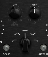 This shows the frequency response in the default state, with Saturation turned on, and with Alt Tube engaged.